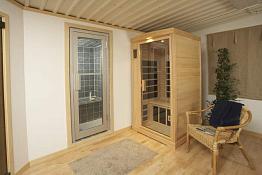 Комбинация инфракрасной кабины saunalux ROYAL с новым оборудованием подачи ионизированного воздуха или ионизированного кислорода и применением солевого раствора предлагает Вам веллнесс во всей полноте. Солевой раствор преобразуется в туман с размером частиц 0,5 - 7,0 мкм, глубоко проникает в дыхательные пути и очищает их. Кроме того, рассол проникает также в глубокие слои кожи и связывает жидкость в них. Ионизированный воздух или кислород легче вдыхается и немедленно обеспечивает отличное самочувствие.