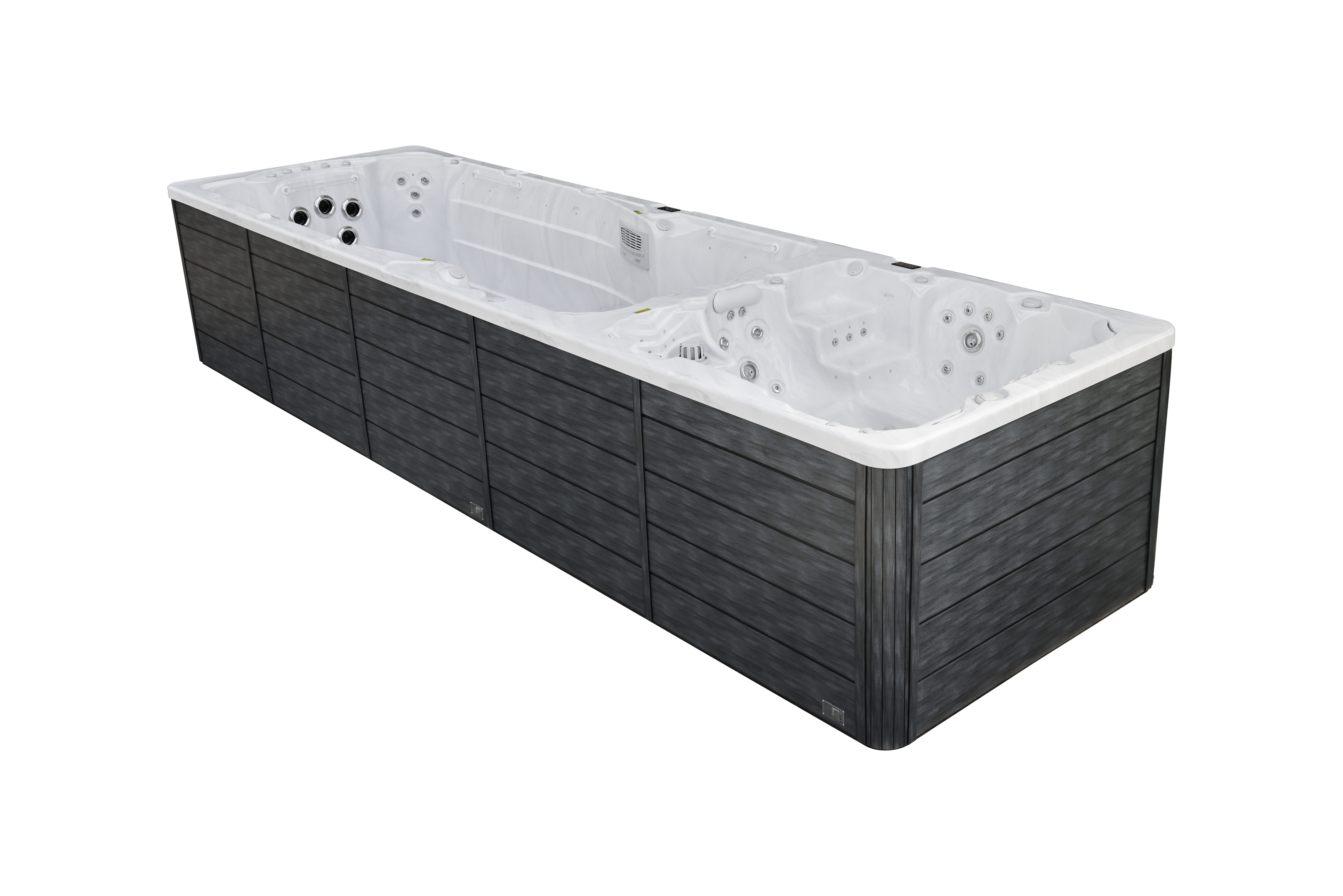 Это полностью готовое решение для тренировок и отдыха. Мощную систему гидромассажа, создающую невероятный комфорт в спа-зоне, обеспечивают 101 форсунка. Эффективный массаж и мощные водяные потоки создаются четырьмя производительными насосами: два насоса мощностью 2,2 кВт для спа-зоны, и два мощных насоса: 2,2 кВт и 2,9 кВт для плавательной зоны, что позволяет создать идеальное встречное течение для плавания.