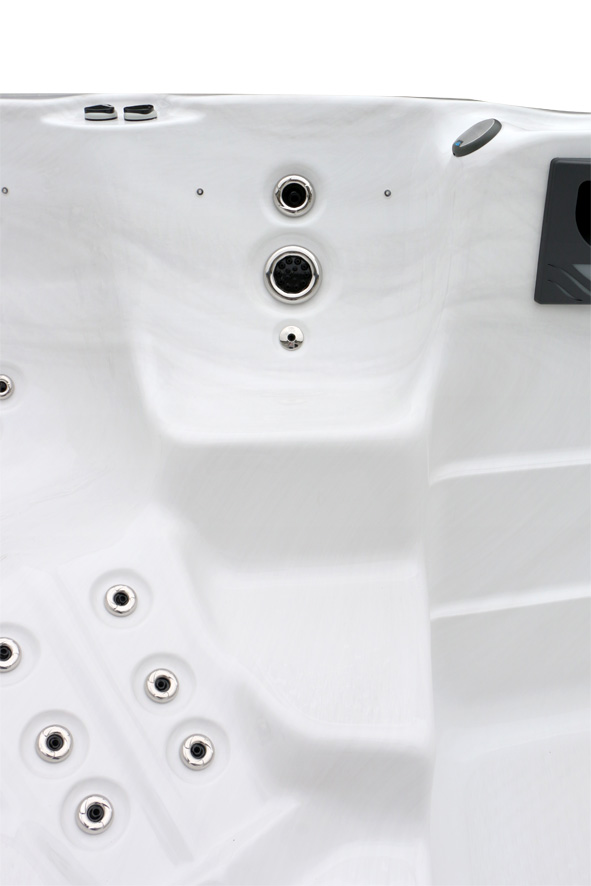 Мощная система с тремя насосами по 2,2 кВт и дополнительным насосом 1,5 кВт обеспечивает эффективный массаж 20 форсунками. Оптимальное распределение водяных струй гарантирует приятное расслабление всех групп мышц.